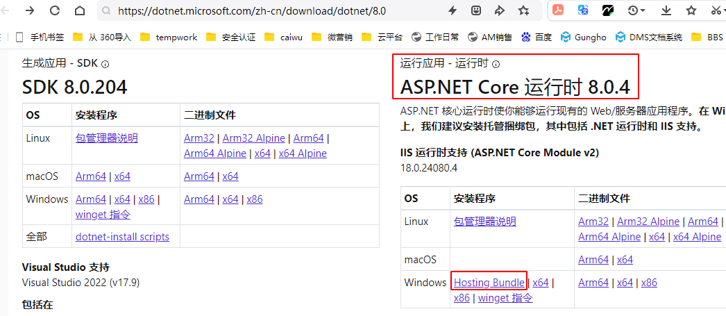Hosting Bundel 下载(这里用的是 .net 8.0)